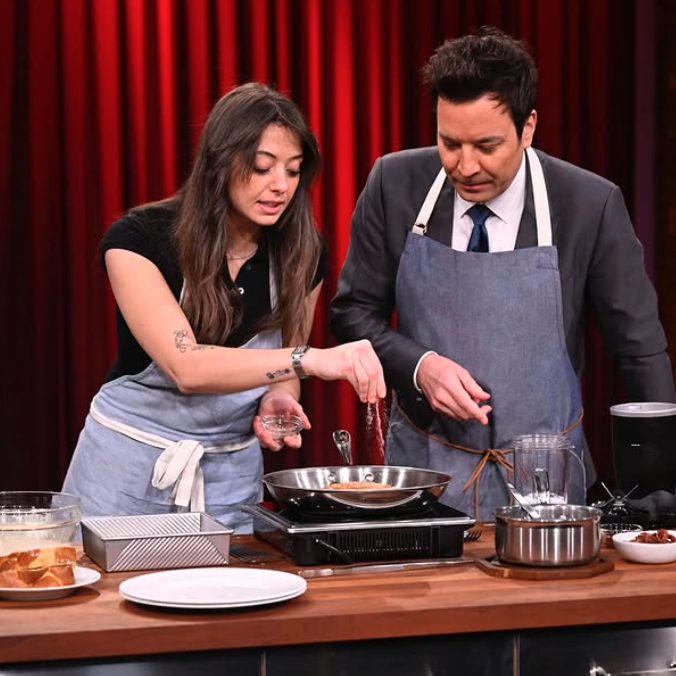 Olivia Tiedemann stopped by The Tonight Show Starring Jimmy Fallon to teach him how to make French toast “her way” and share the launch of her upcoming cookbook next year!